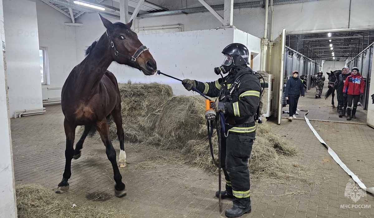 Сложность ликвидации пожара на этом объекте состоит в том, что единовременно здесь находятся около ста лошадей и всего лишь несколько человек из числа персонала. Но пожарные продемонстрировали высокий уровень профессионализма.