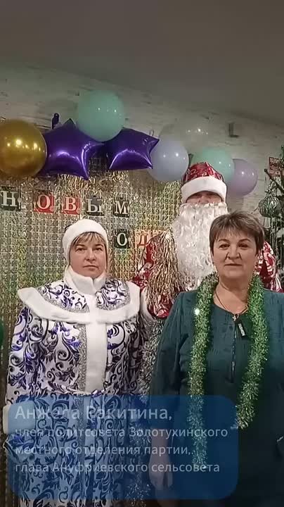 «Поздравляю с наступающим Новым годом! Желаю исполнения всех планов. Счастья, добра и благополучия!» - примите поздравление от члена политсовета Золотухинского местного отделения партии, главы Ануфриевского сельсовета Анжелы Ракитиной.