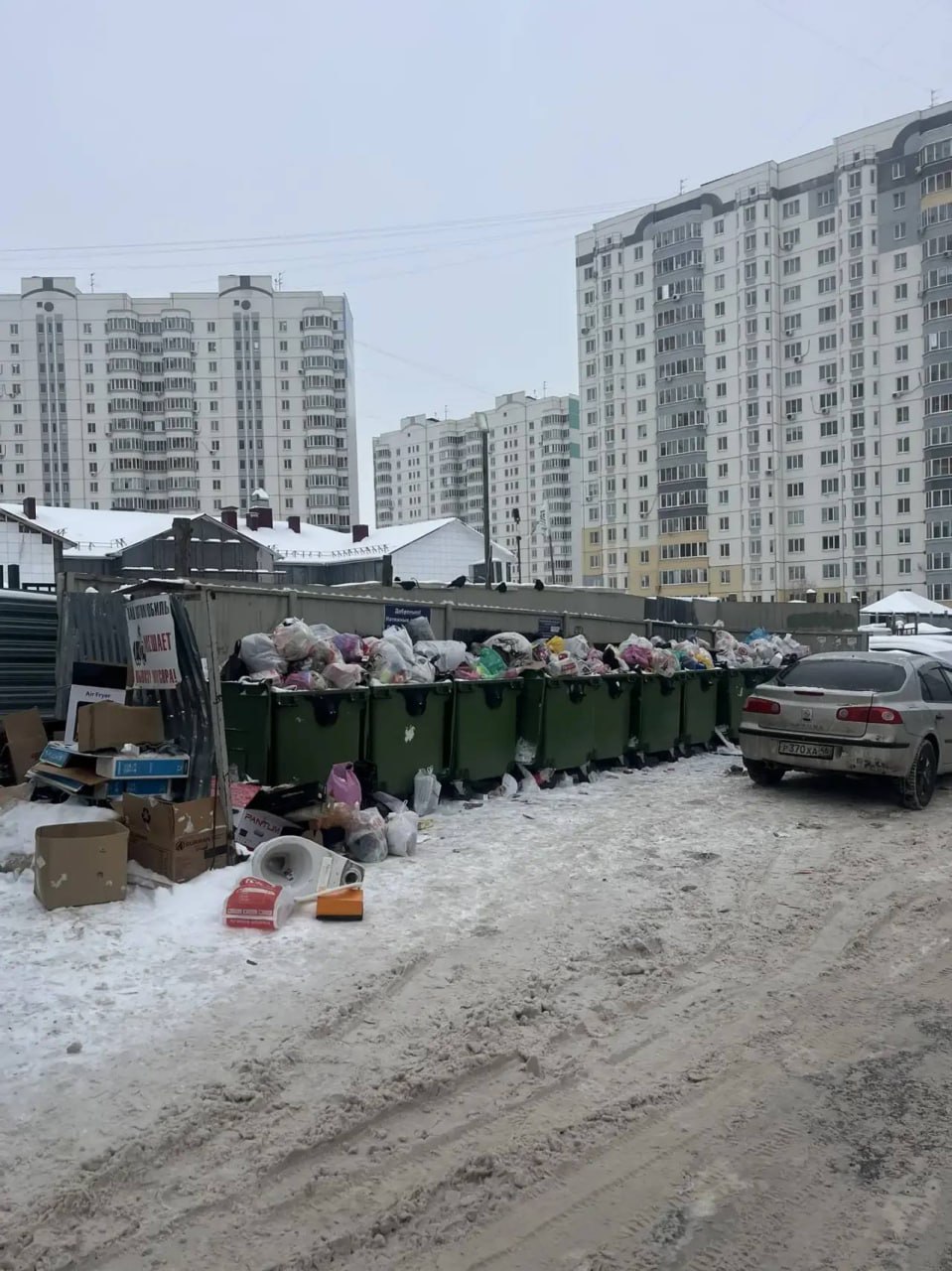 Спецтехника попросту не может проехать к бакам. Площадки остаются переполненными из-за того, что отходы не смогли забрать своевременно.
