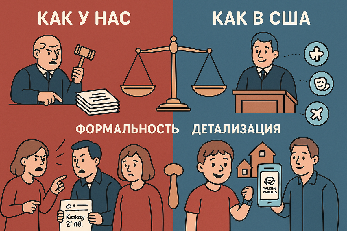 В американских судах, как показывает практика, вопросы, связанные с воспитанием и общением с детьми, рассматриваются с особым вниманием. Судебные решения структурированы по разделам, что позволяет учесть многие аспекты жизни ребенка. Например, в одном из дел по опеке были детально прописаны условия, касающиеся: