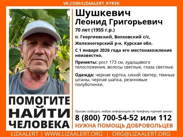 Поисковый отряд «Лиза Алерт» объявил о розыске 70-летнего Леонида Шушкевича. Пенсионер пропал 1 января.