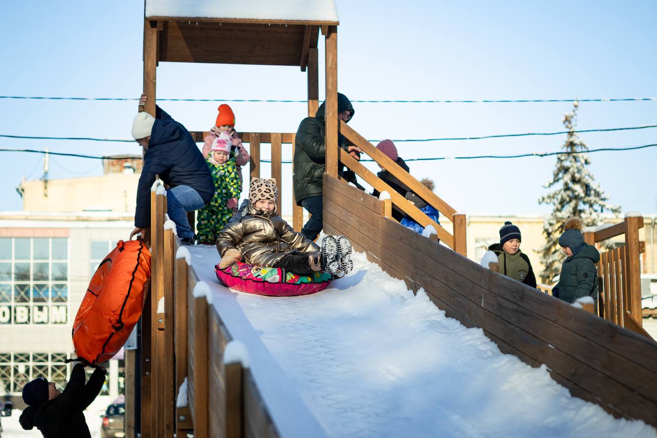 Возле «Лиры» рядом с новой тюбинговой горкой сотрудники учреждения организовали для детей и их родителей игровую программу.