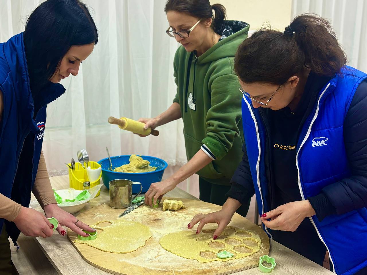 другие (в основном, женская половина) пекут вкусное новогоднее печенье.