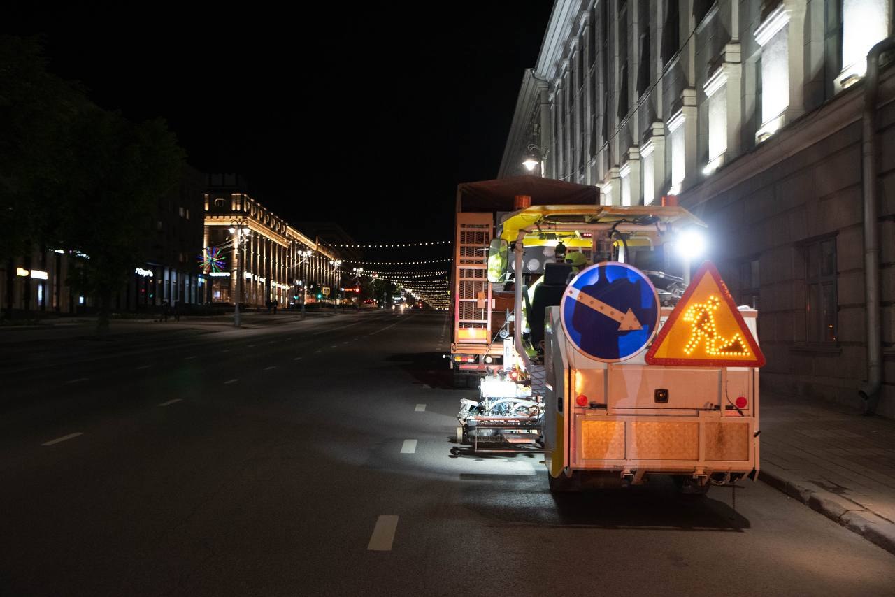 В прошлом году в Курске обновляли дорожную разметку. Работы велись по муниципальным контрактам с подрядчиками.