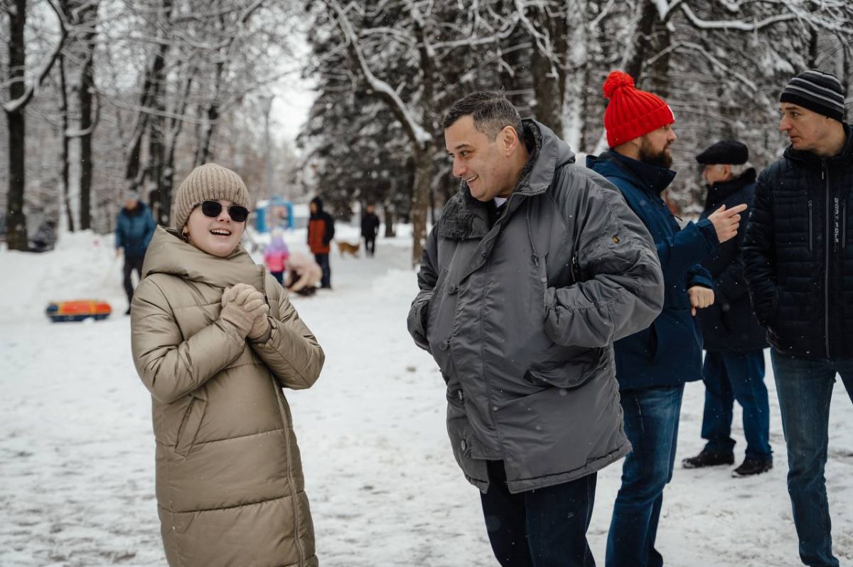 Вместе с девочкой он посетил парк, чтобы проверить, как преобразилась территория после проведённых работ. Теперь в парке установлена нарядная ёлка и развешаны праздничные гирлянды.