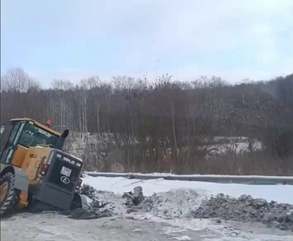 По предварительным данным очевидцев, выложивших кадры с места в паблике «Автокадр_46», на плотине возле Рощи Невест на улице Тропинка чистивший снег на дороге грейдер съехал в кювет и застрял, провалившись в снежную массу на обочине.