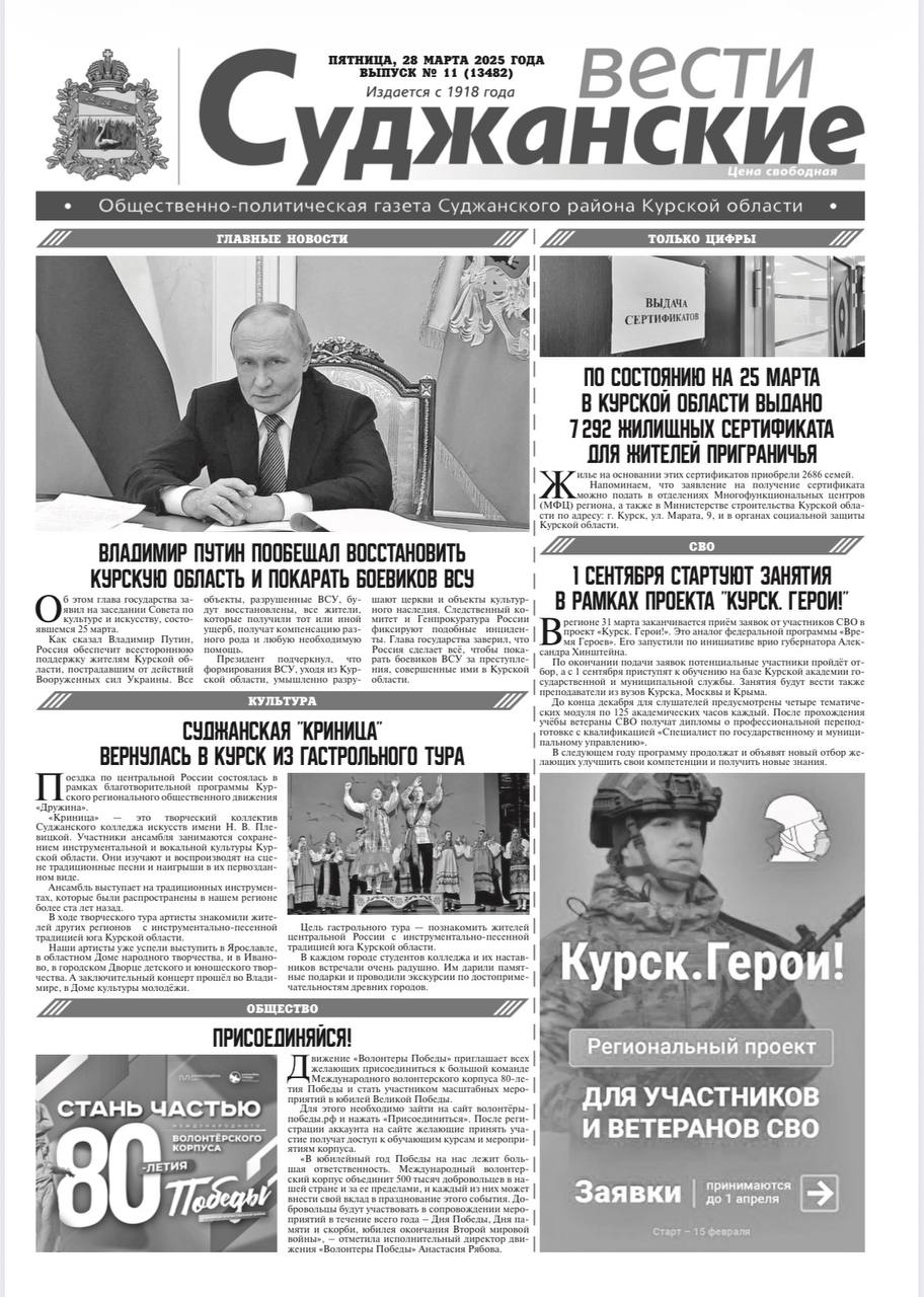 Поздравляю с профессиональным праздником - Днём российской печати редакцию газеты «Суджанские вести»!