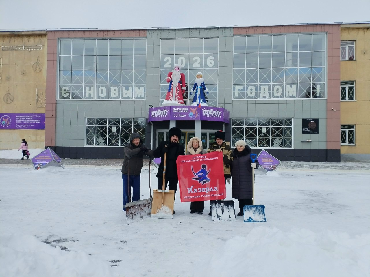 Сотрудники городского культурного цента «Лира» совместно с курским областным отделением Межрегиональной общественной организации развития традиционного казачьего военного искусства Федерации рубки шашкой «Казарла» расчистили прилегающую территорию к зданию центра.