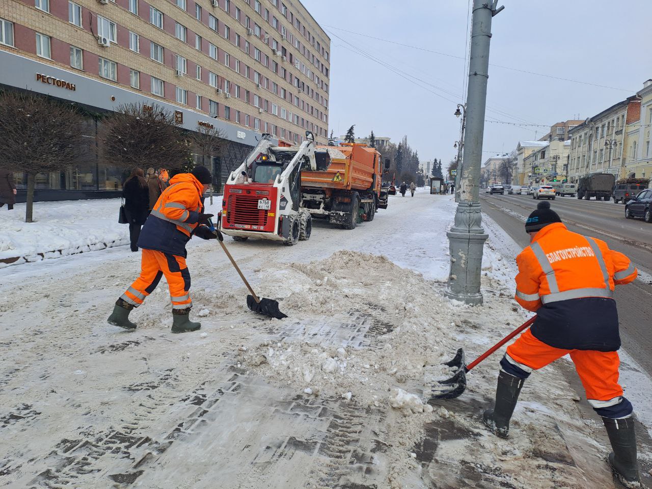 По данным комитета ЖКХ, на городских улицах задействовано 75 единиц техники, включая 36 комбинированных машин, погрузчики, пескоразбрасыватели, бульдозеры и роторные снегоуборщики. В тех местах, где техникой не обойтись, уборку выполняют вручную 71 сотрудник.