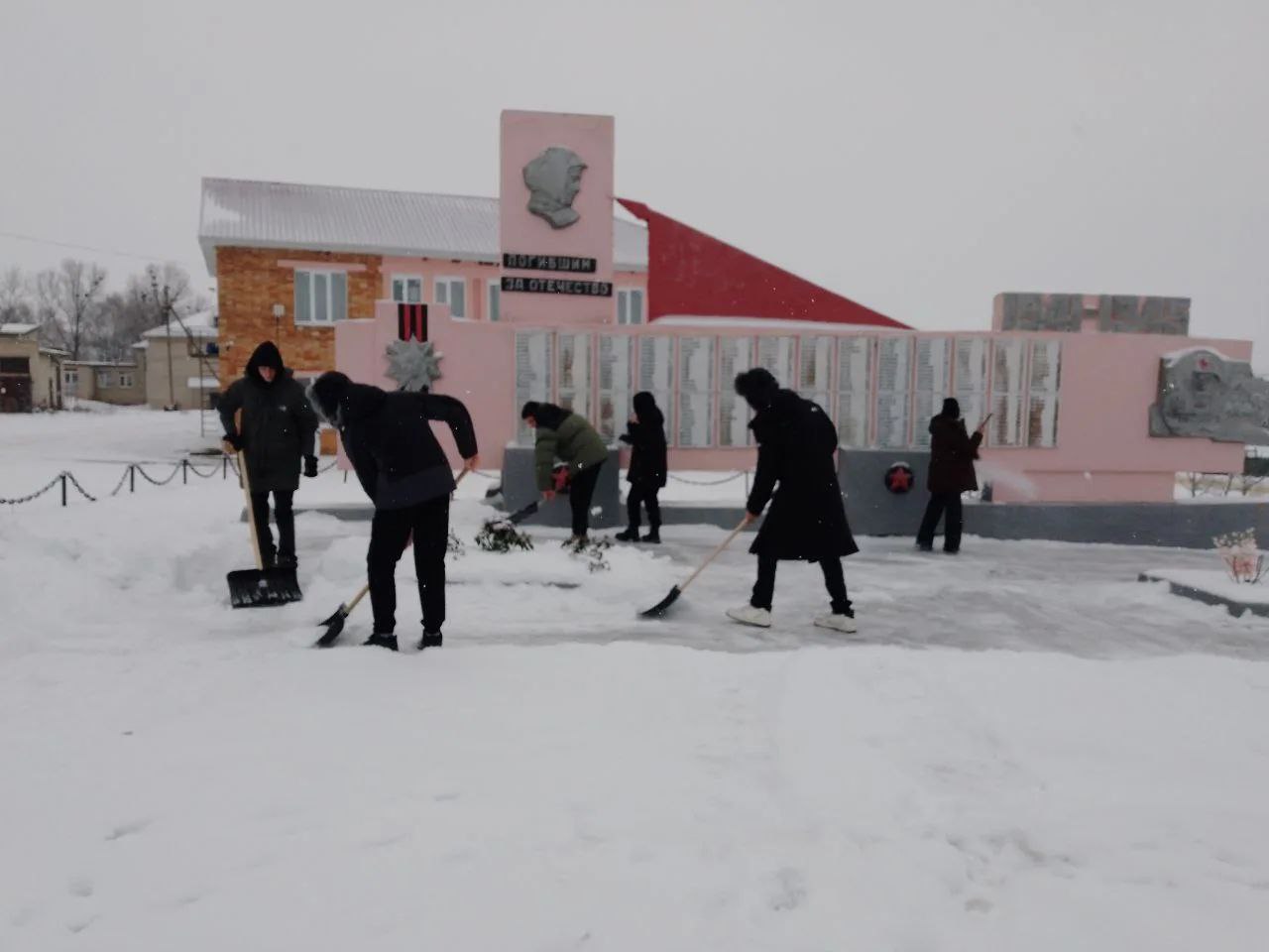 В первые учебные дни после каникул школьники района очищают от снега памятники и мемориала на территории населенных пунктов Медвенского района