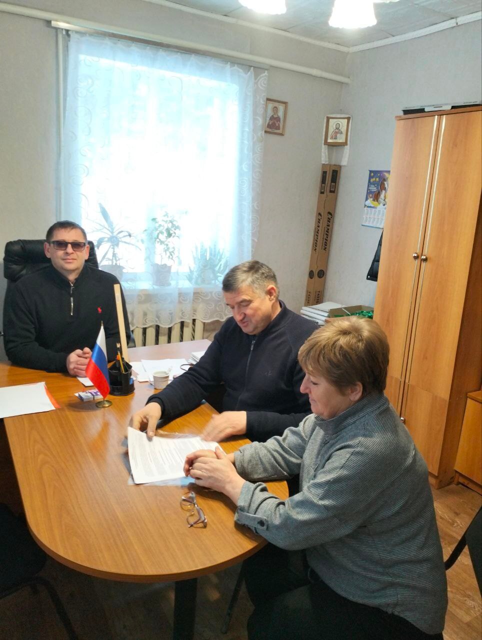 Обсудили основные направления деятельности на ближайшее время - нормализация подачи воды и электроснабжения. приведение в порядок дорожного полотна в населенных пунктах, а так же предстоящие выборы главы сельского поселения.