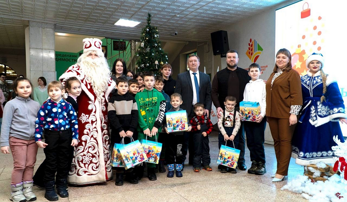 Евгений Лобов вручил детям из ПВР сладкие подарки, а после пообщался со студентами университета.