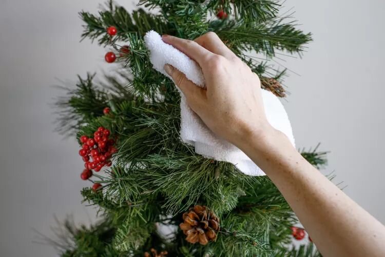 В качестве альтернативы можно воспользоваться душем. Установите ёлку в ванной и полейте её слабой струёй тёплой воды. После этого обязательно следует просушить ёлку перед установкой, а для ускорения процесса можно воспользоваться тряпкой.