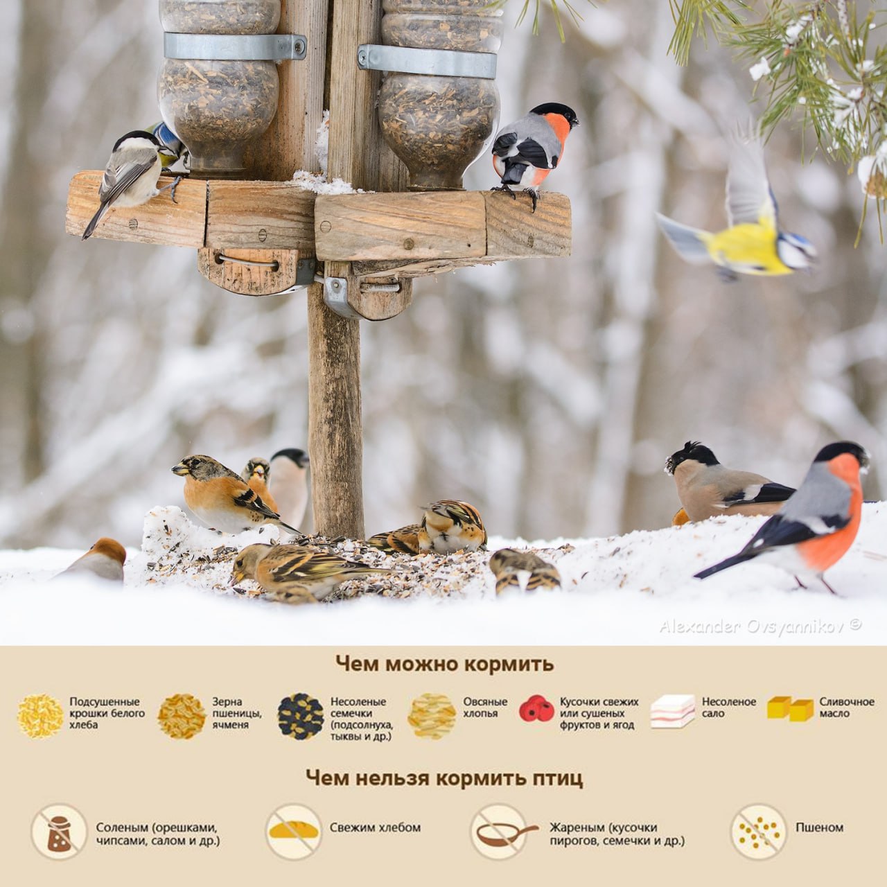 Друзья, напоминает, чем угостить птиц зимой. Помните: лучше пустая кормушка, чем отрава!