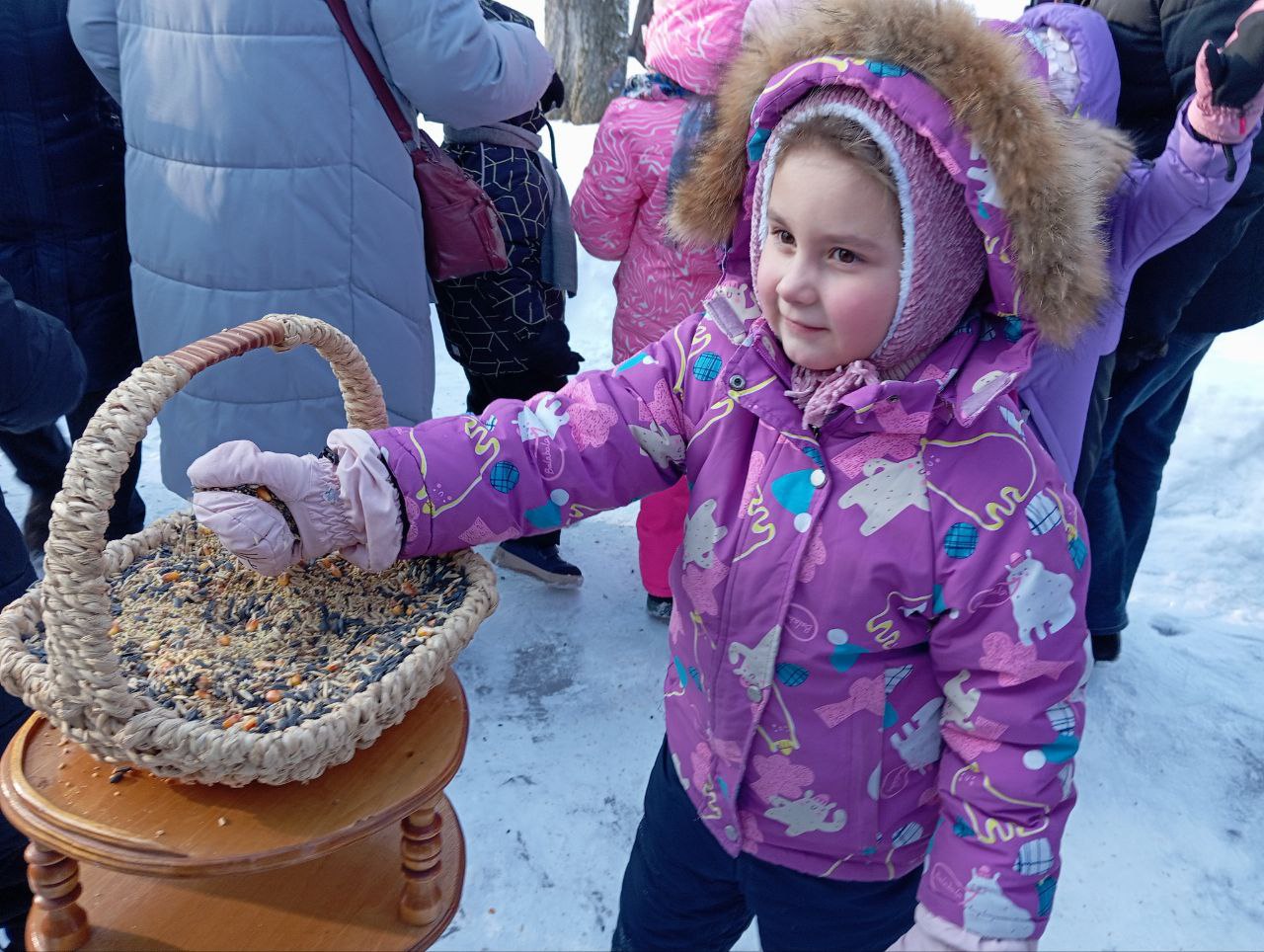 Кормушки наполнили школьники, воспитанники Дворца пионеров и их родители вместе с педагогами. Акцию проводят ежегодно с 2010 года. Особенно важно поддержать пернатых в морозы, когда еды в природе почти нет.