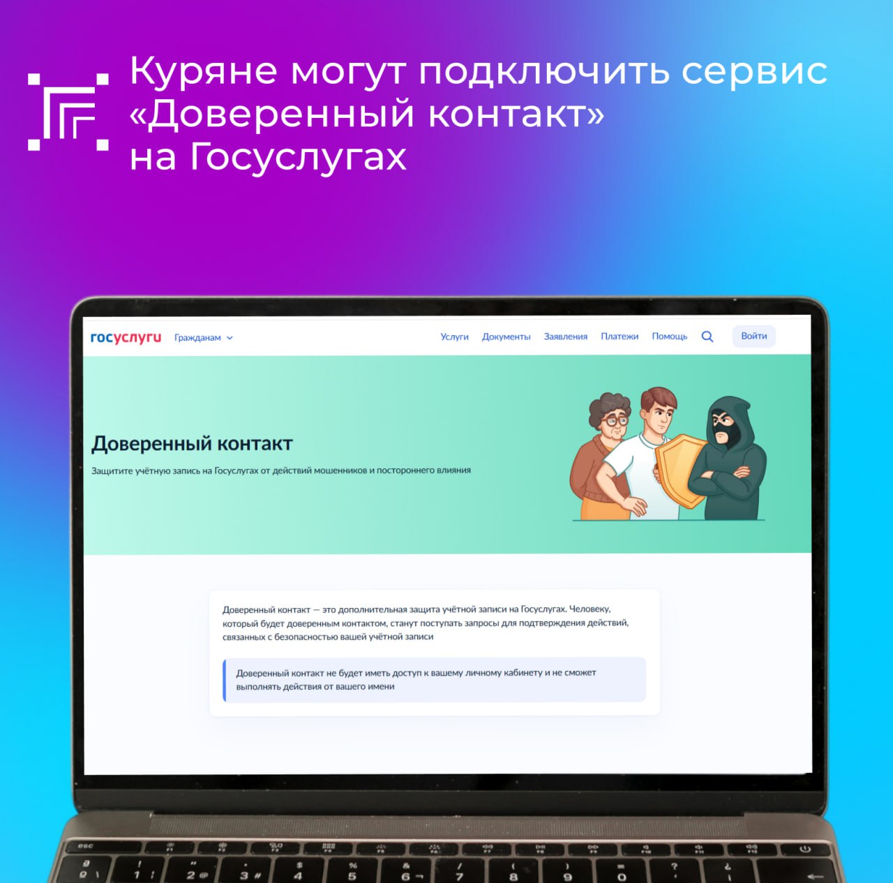 Для усиленной защиты от мошенников на Госуслугах появилась возможность назначить доверенный контакт. Развитие цифровых сервисов проходит в соответствии с нацпроектом «Экономика данных».