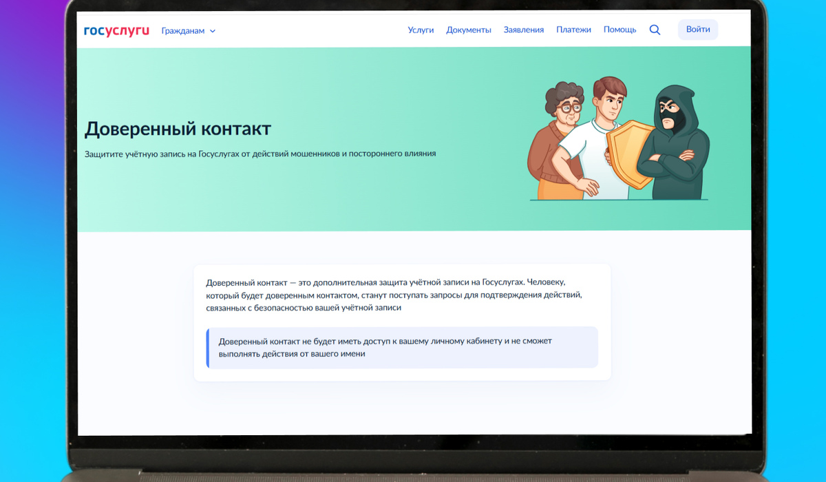Важно, что доверенный контакт не получает доступ к личному кабинету и не может выполнять действия от имени пользователя.