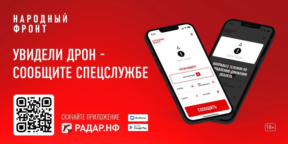 П приложение «Радар.НФ». позволяет оперативно передавать информацию о беспилотниках спецслужбам и военным структурам.