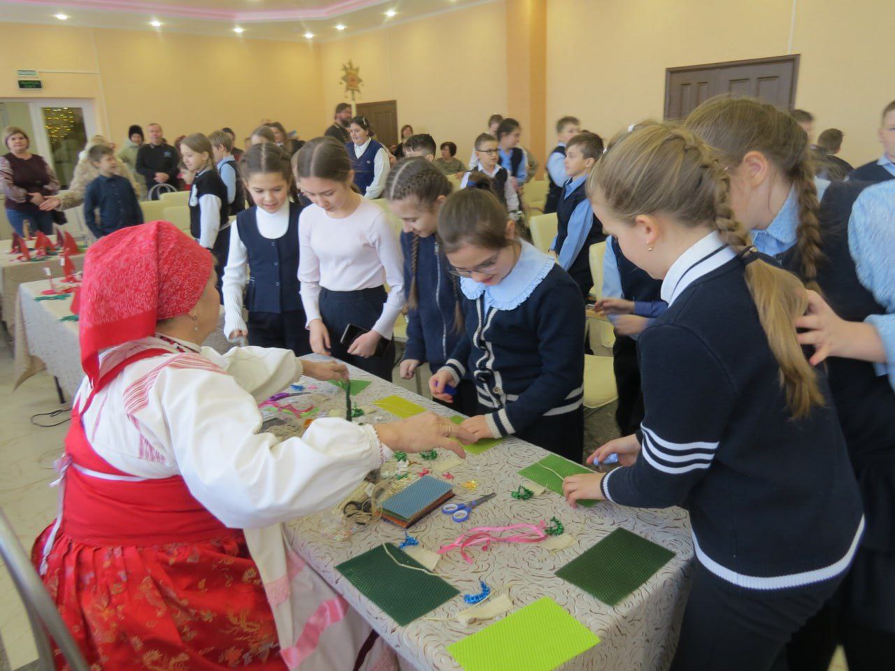 В Центре народного творчества прошло заключительное мероприятие, посвященное новогодним и рождественским праздникам. Организаторы пригласили коллективы воскресных школ Успенского и Митрофановского храмов. Взрослые и дети исполнили традиционные рождественские колядки. Добрые и очень трогательные творческие номера подготовили ребята и педагоги из Детской школы искусств. Вместе с работниками культуры района ребята своими руками делали рождественские игрушки