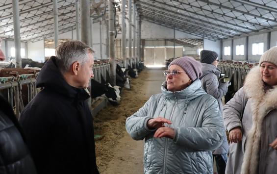 Также Александр Чепик посетил крестьянско-фермерское хозяйство Веры Басовой. Предприниматель работает в агропромышленном комплексе более 36 лет, а собственное хозяйство, специализирующееся на молочном скотоводстве, основала в 2011 году. Здесь используется современная система круглогодичного беспривязного содержания животных и применяются передовые технологии, что позволяет получать качественное молоко при минимальных издержках.