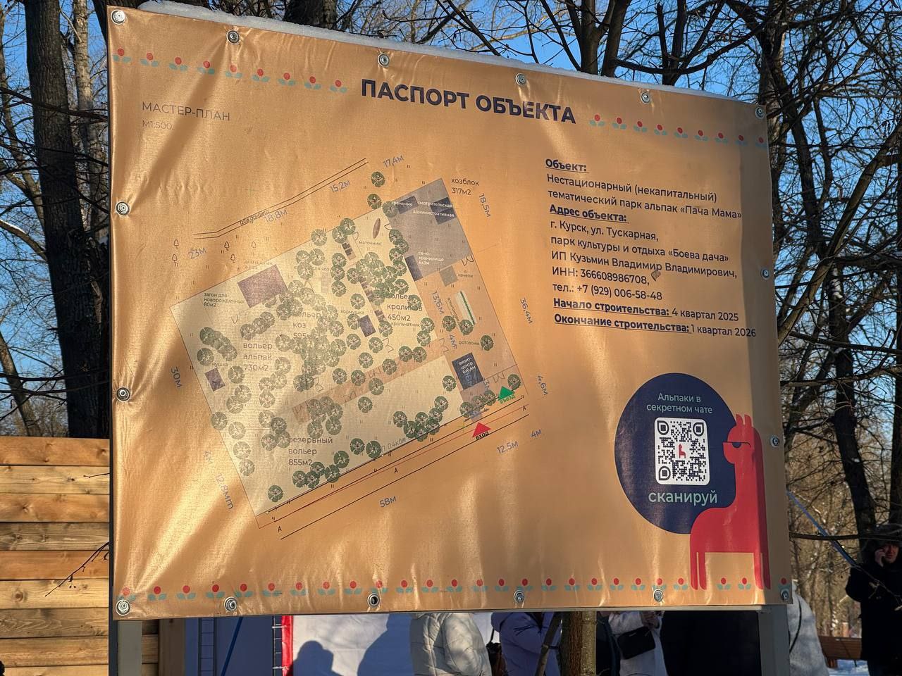 Предприниматель Сергей Слабунов представил проект, подчеркнув, что парк альпак «Пача мама» входит в сеть зоопарков в 11 регионах России. Название связано с перуанской богиней Матери-Земли, что отражает культурное наследие альпак. Главная идея — предоставить возможность посетителям познакомиться с альпаками и получить "альпак-терапию" для эмоционального и экологического баланса. Посещения будут только в формате экскурсий, с контролем для защиты животных. Кормление строго дозировано и входит в стоимость билета (около 600 рублей), дополнительный корм не продается. Ветеринар будет постоянно следить за здоровьем животных.
