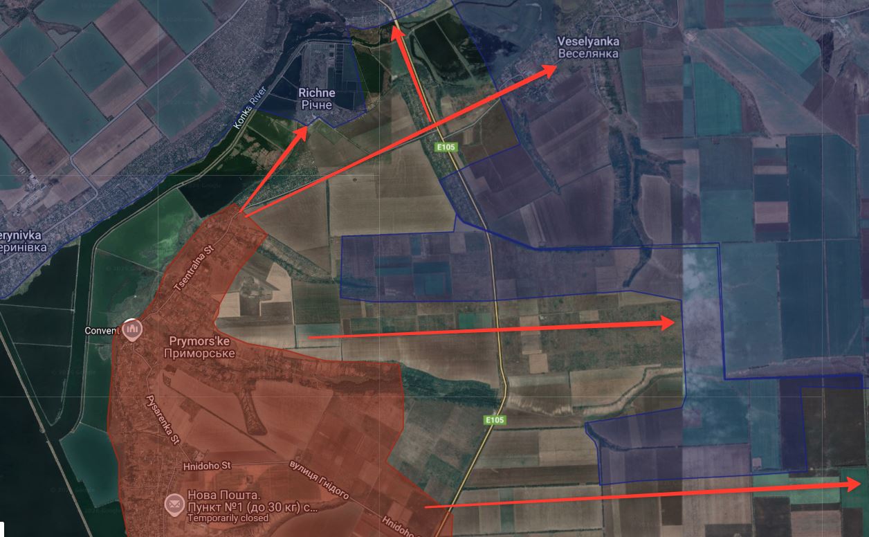 После освобождения Приморского в Запорожской области ВС РФ давят на Речное и Веселянку, сообщает "Шепот фронта":