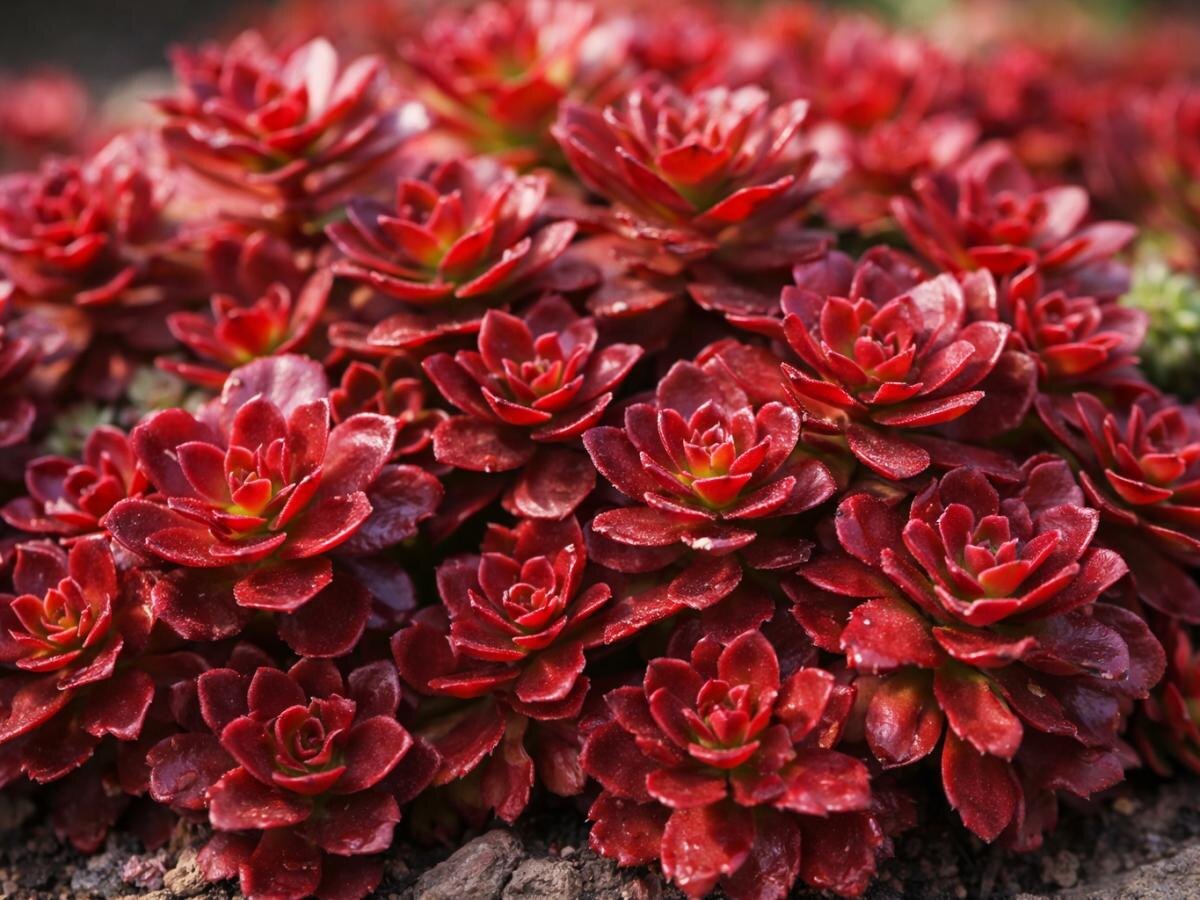 Красные и фиолетовые оттенки седума обусловлены антоцианами — пигментами, которые защищают клетки растения от солнечного излишка. При ярком свете уровень этих защитных веществ повышается, что способствует снижению окислительного стресса. В то же время, при слабом освещении, рисунок листьев становится более зелёным, так как главный пигмент — хлорофилл — начинает доминировать.