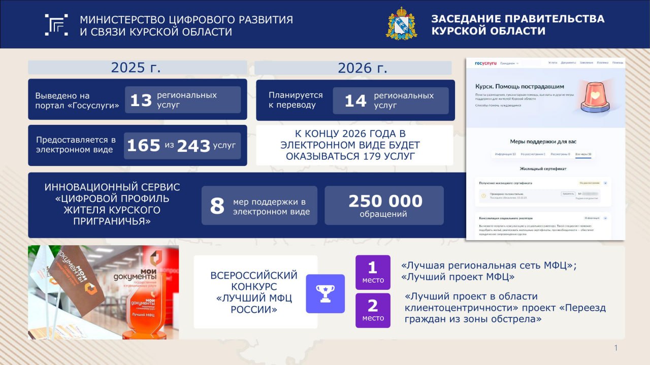 Оксана Крутько на заседании Правительства Курской области рассказала об итогах работы цифрового блока в 2025 году и планах на 2026 год. Подробнее в карточках. #цифровизация46