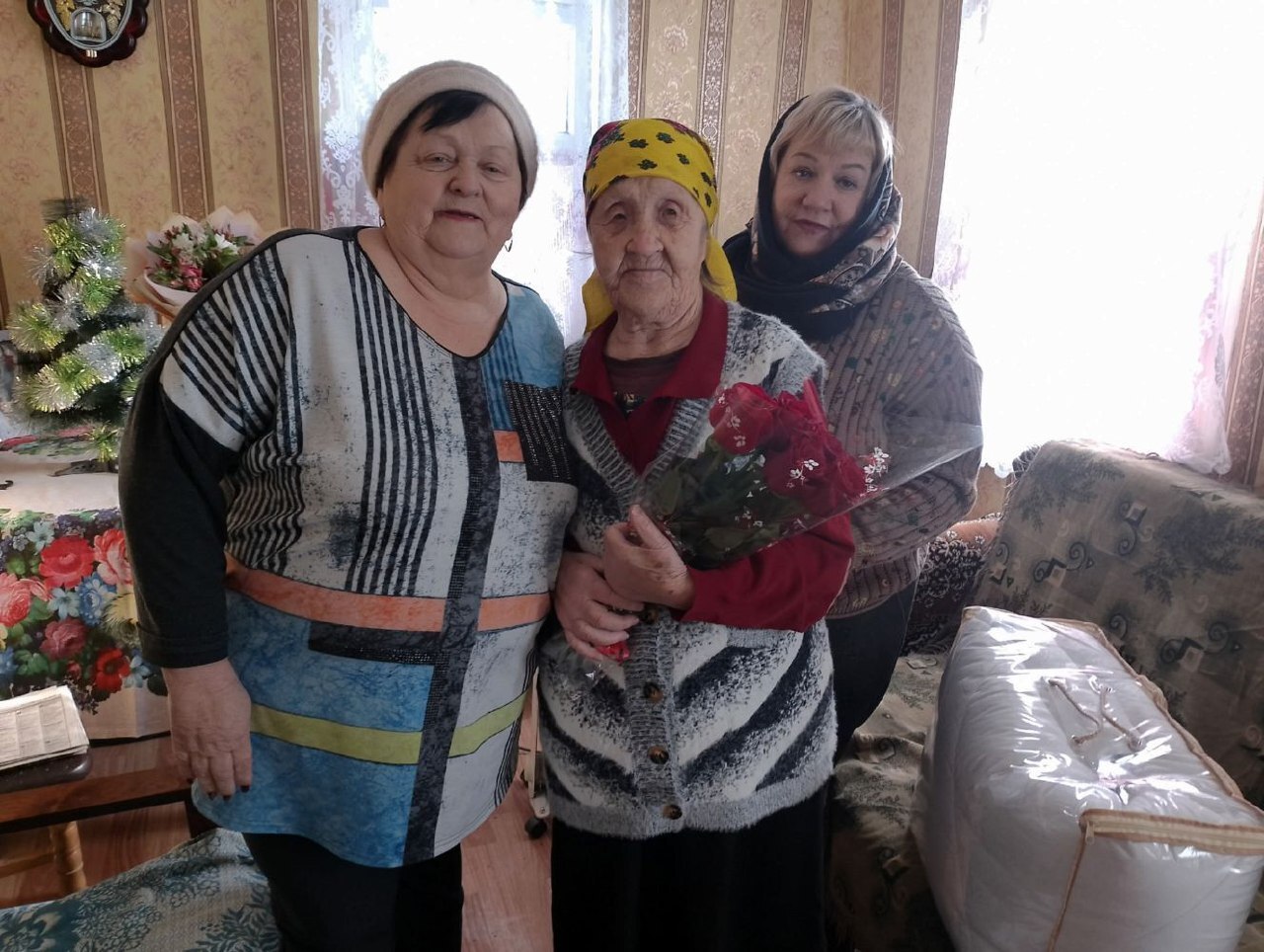 Заместитель главы администрации Банинского сельсовета Тамара Беленкова и работник культуры Светлана Полякова с глубочайшим уважением поздравили Антонину Капитоновну, пожелали здоровья, любви и заботы родных.