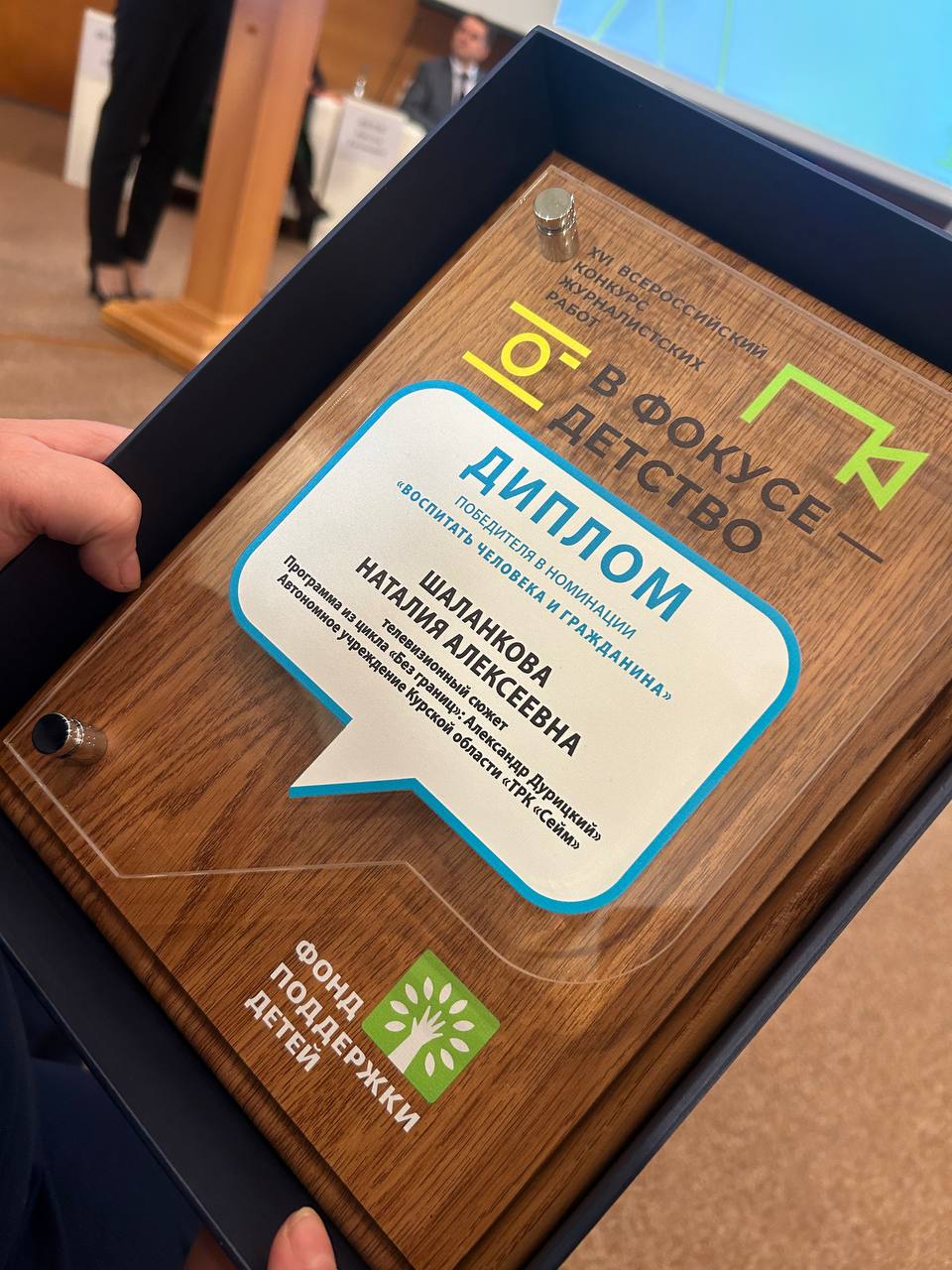 Шеф-редактор ТРК «Сейм» Наталия Шаланкова стала победителем в номинации «Воспитать человека и гражданина» с выпуском программы из цикла «Без границ»: Александр Дурицкий».