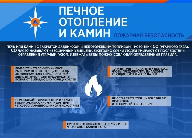 Помните, что, если вы живете в частном доме на даче, перед началом отопительного сезона необходимо проверить и отремонтировать печи, дымоходы следует очистить от сажи и побелить. Неисправные печи, камины и дымоходы не должны допускаться к эксплуатации. А в течение отопительного сезона производить чистку дымоходов и печей от сажи не реже 1 раза в 3 месяца. Не стоит забывать, что категорически запрещается оставлять над печами для просушки домашние вещи и другие сгораемые материалы.Запрещается эксплуатировать печи и другие отопительные приборы без противопожарных разделок (отступок) от конструкций из горючих материалов, предтопочных листов, изготовленных из негорючего материала размером не менее 0,5 x 0,7 метра (на деревянном или другом полу из горючих материалов), а также при наличии прогаров и повреждений в разделках, наружных поверхностях печи, дымовых трубах, дымовых каналах и предтопочных листах.