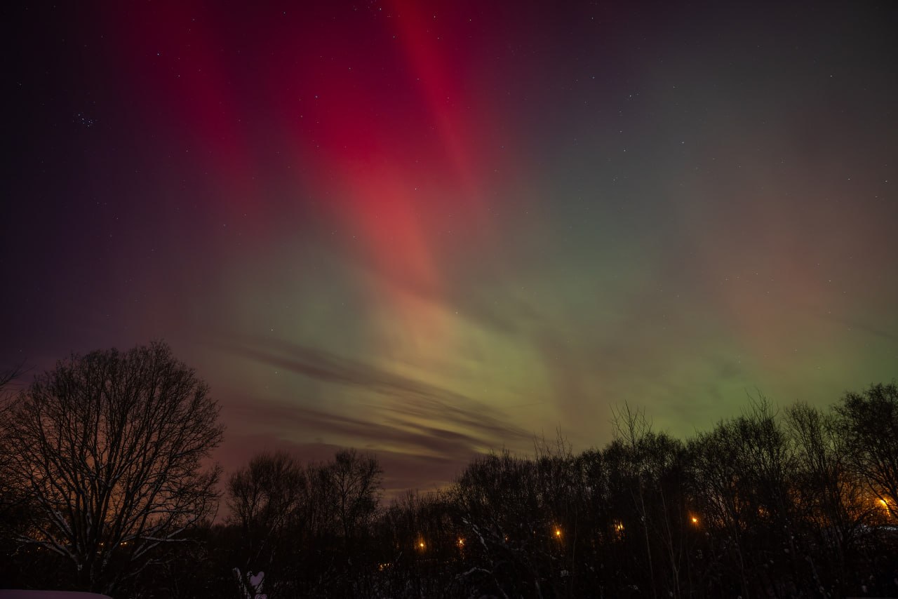 Доброе утро! Мощнейшая магнитная буря обрушилась на землю этой ночью. Северное сияние наблюдали даже в Крыму. Вот эти фотографии были сделаны в Смоленской области Сергеем Хабаровым в городской черте. Магнитная буря все еще продолжается. #ПрогнозПогоды