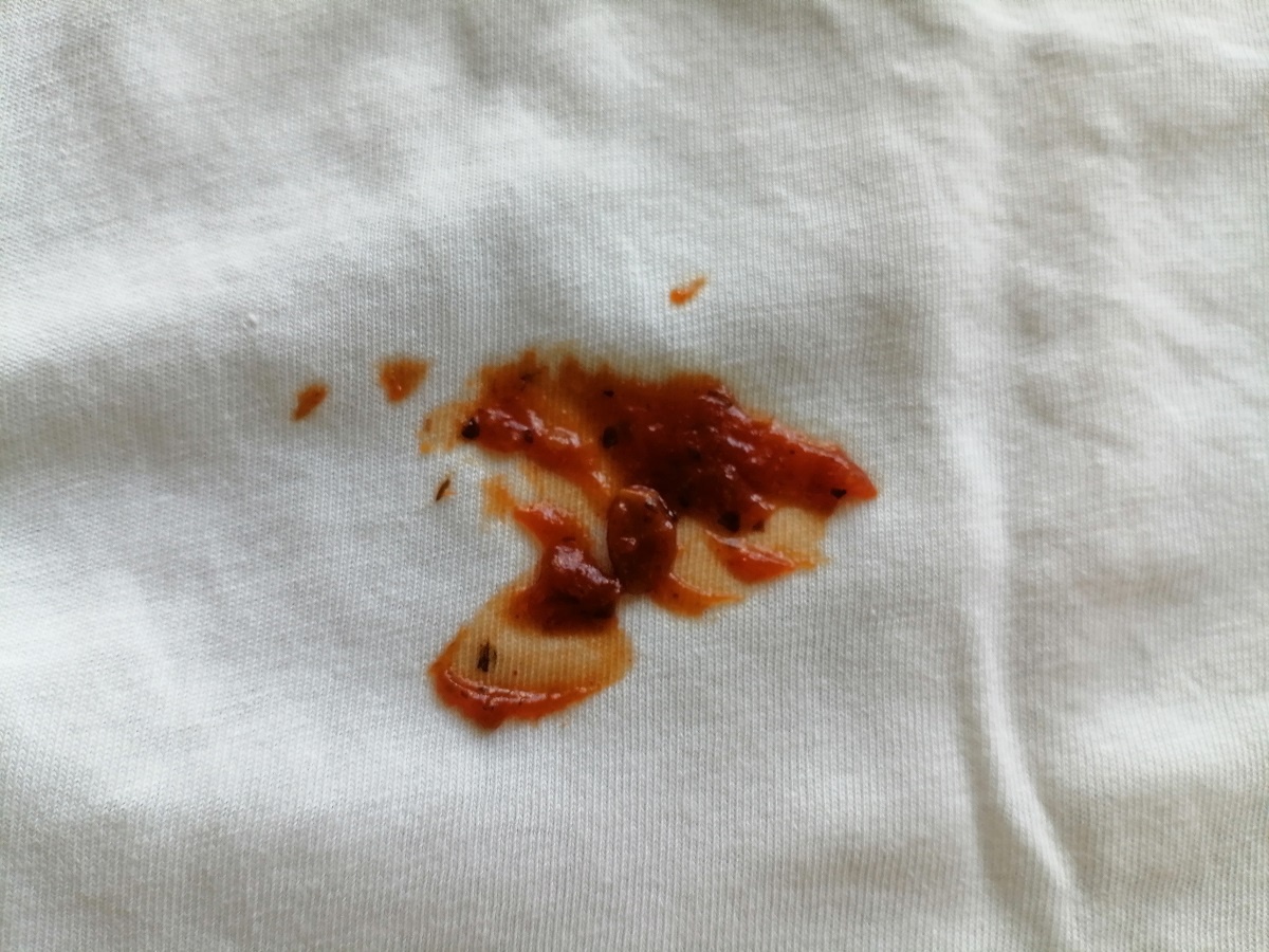 Смешение жира и пигментов в соусах оставляет двойной след — цвет и жирность. Белый цвет текстиля делает даже самые мелкие недостатки заметными, а хлопковая структура поглощает загрязнения, так что вывести их может быть непросто.