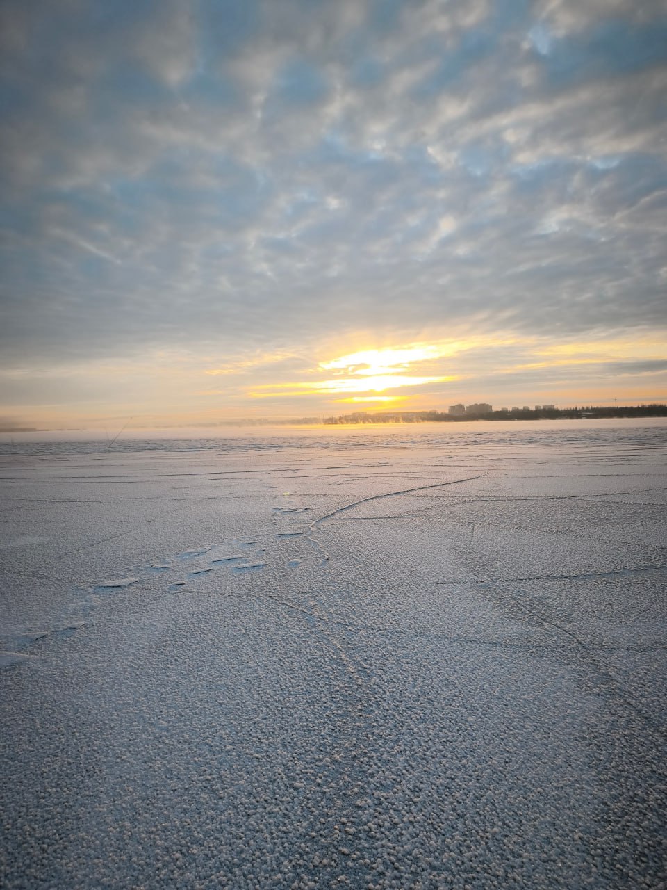 Зима в этом году особенно щедра на морозы и создала удивительную ледяную гладь на водохранилище в городе Курчатове