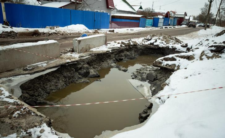 Ремонт трубы осложняется из-за ее большого диаметра. Заказаны хомуты, но из-за новогодних праздников произошла задержка в поставках.