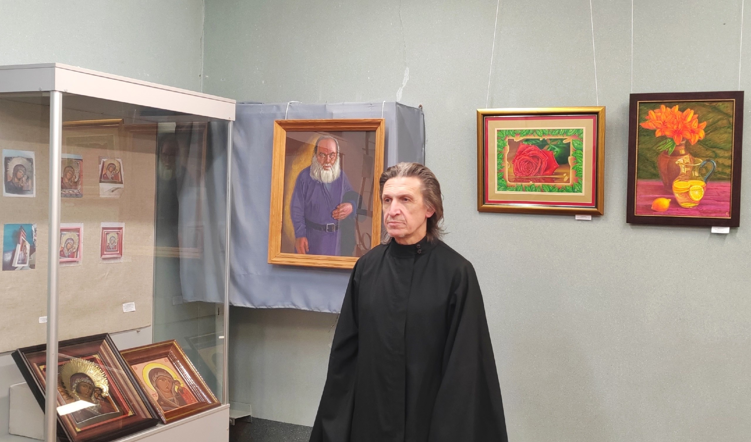 Свои работы представил отец Георгий (Гвоздев), дьякон храма иконы Божией Матери «Утоли моя печали» города Железногорска. Со слов автора, выставку он посвятил сыну Александру, который сейчас участвует в спецоперации.