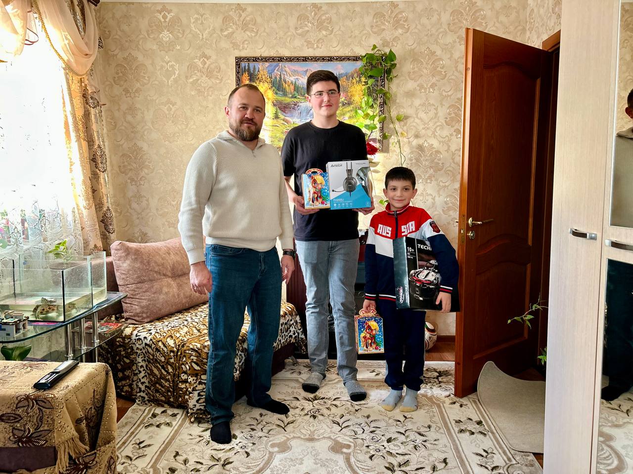 Депутат лично пришел в гости к семье Реутовых, чтобы вручить Владиславу заветную игрушку. Не остался без внимания и старший брат мальчика — ему Роман Шевелев подарил наушники.