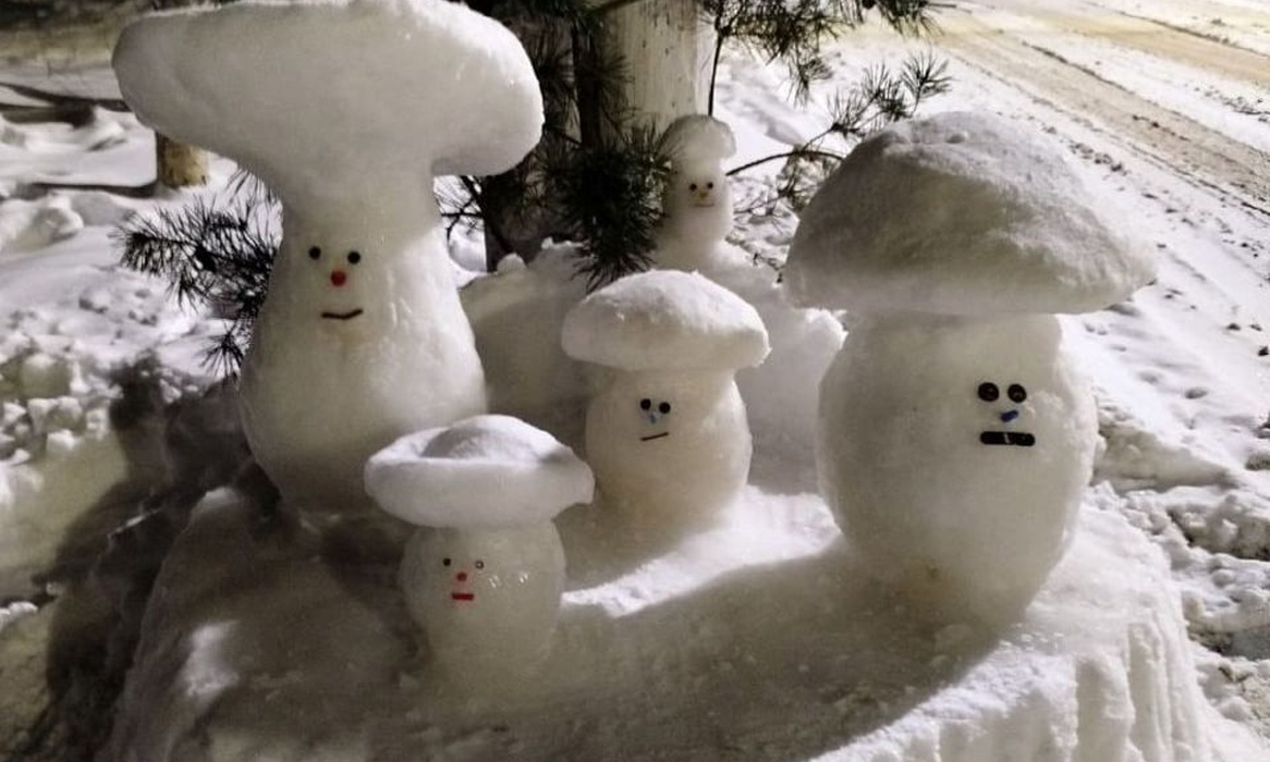 В этом году на его приусадебном участке появились снежные фигуры: дружная грибная семейка, Снежная королева в шляпке и весёлый заяц. Вдохновляет мастера любовь к внукам, именно для них он создаёт эти зимние чудеса, чтобы подарить радость и хорошее настроение.