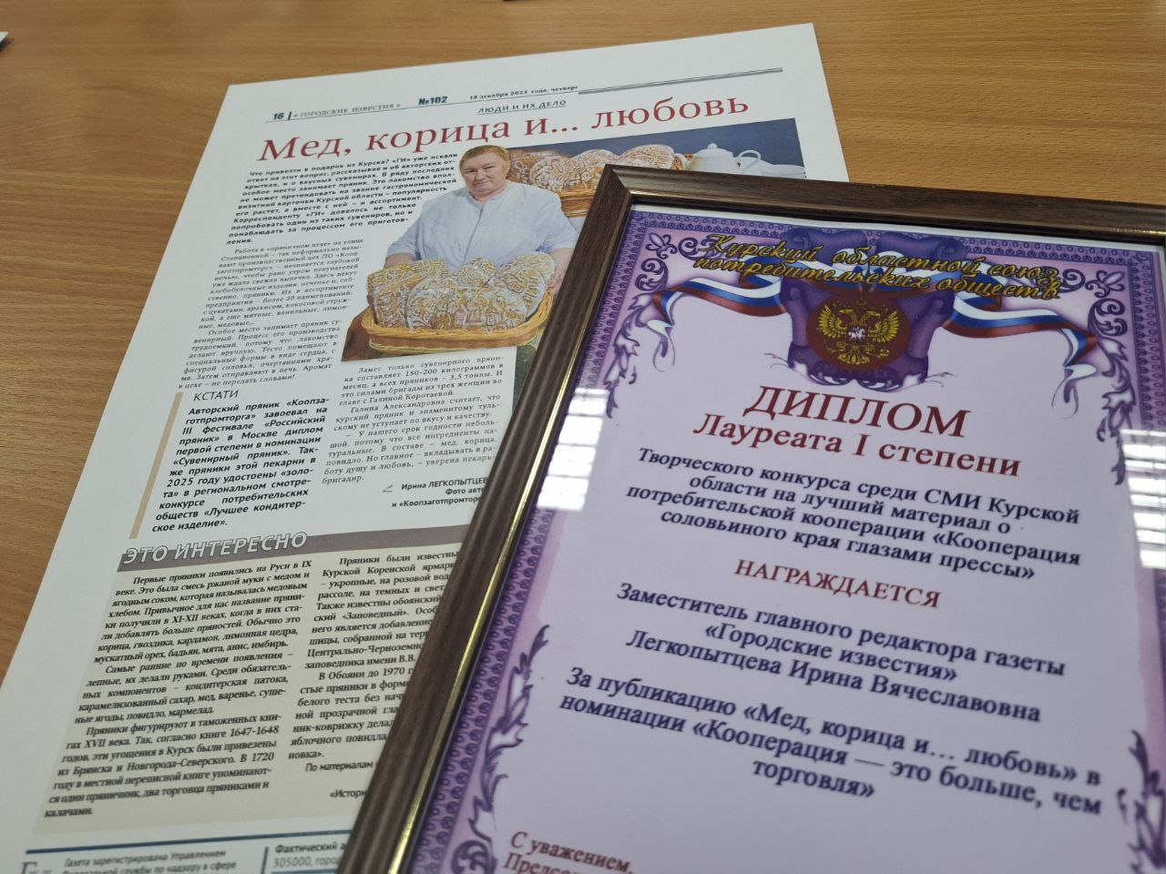 В числе победителей – заместитель главного редактора газеты «Городские известия» Ирина Легкопытцева. Первое место в номинации «Кооперация – это больше, чем торговля» занял ее материал «Мед, корица и… любовь».