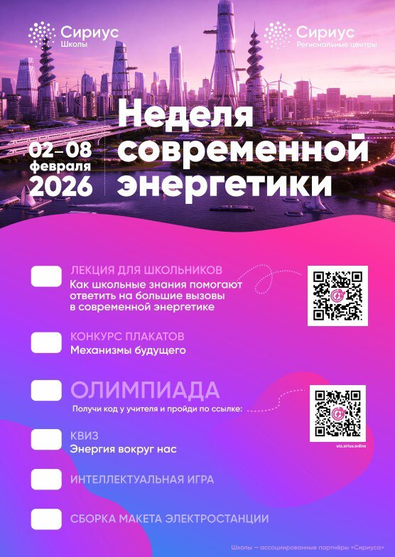 В образовательном центре «Сириус» со 2 по 8 февраля состоится неделя современной энергетики. Мероприятие пройдет в рамках тематических недель, посвященным приоритетным направлениям Стратегии научно-технологического развития РФ.