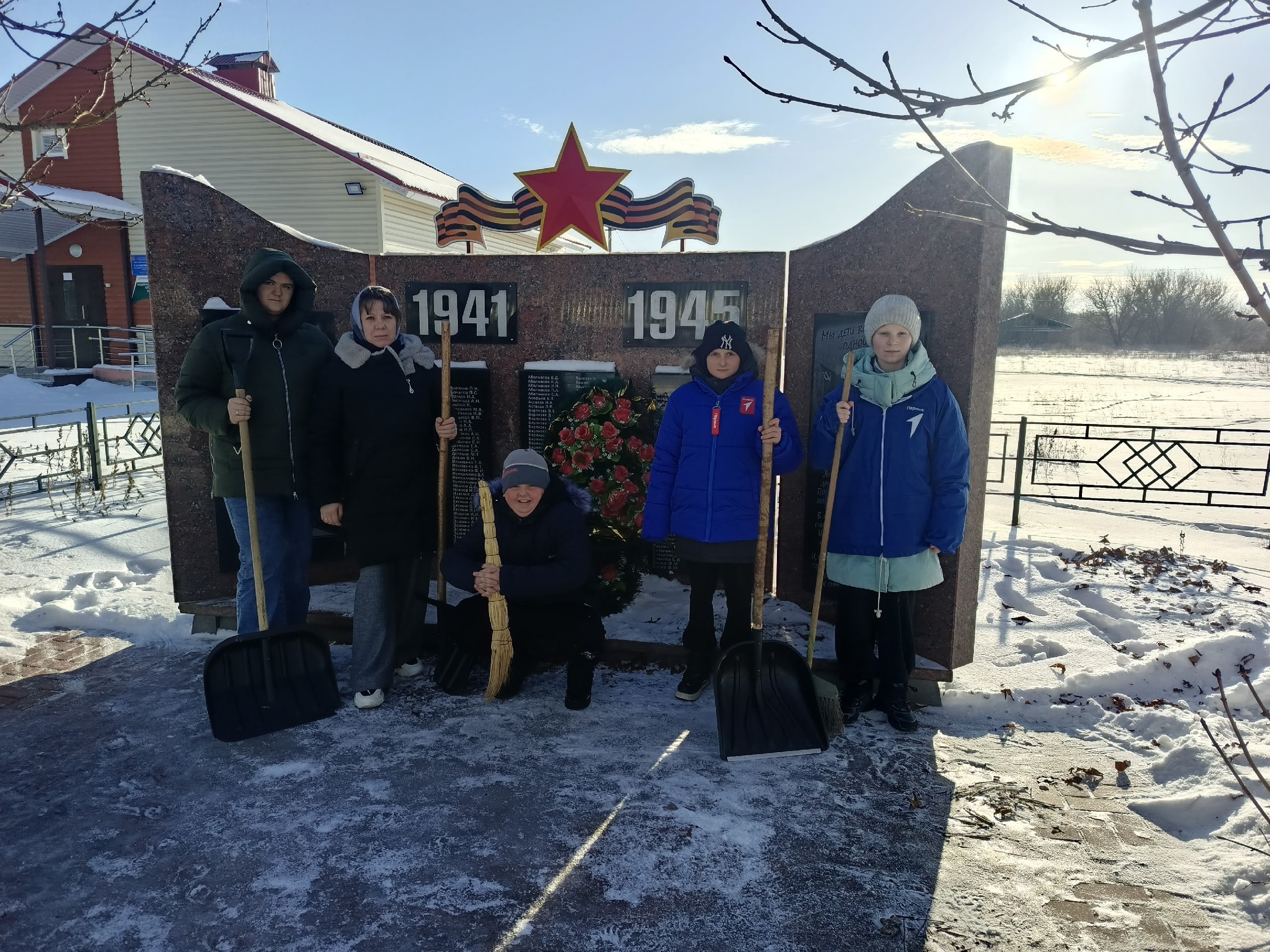 Ребята под руководством советника директора по воспитанию Чернышовой Е.Г. очистили от снега Обелиск односельчанам, павшим в Великой Отечественной войне» села Сазановка.