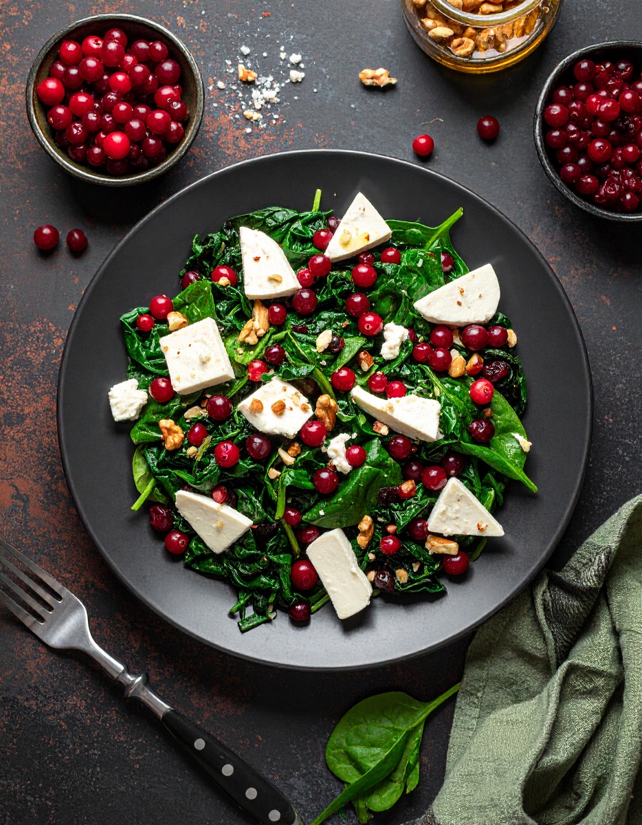 Клюква отлично подходит не только для десертов и напитков, но и для несладких блюд. Одним из популярных рецептов является тёплый салат с клюквой, шпинатом и козьим сыром, который идеально подойдет для осеннего меню.