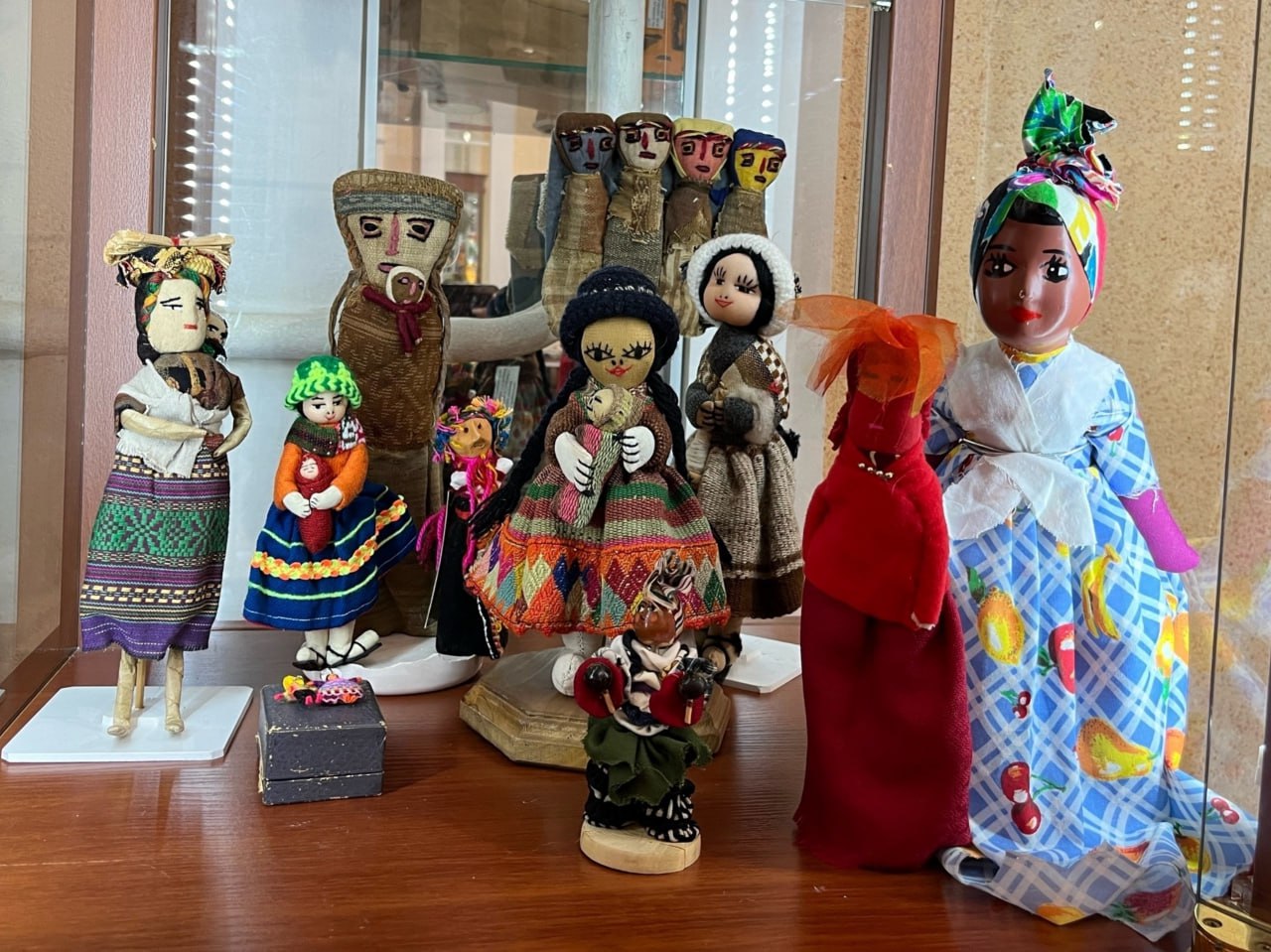Представлены игровые, обрядовые, сувенирные куклы народов Африки, Латинской и Северной Америки, стран Карибского бассейна, Азии, куклы народов России в традиционных костюмах. Есть оригинальные куклы, привезенные из Кубы, Перу, кукла амишей и другие.