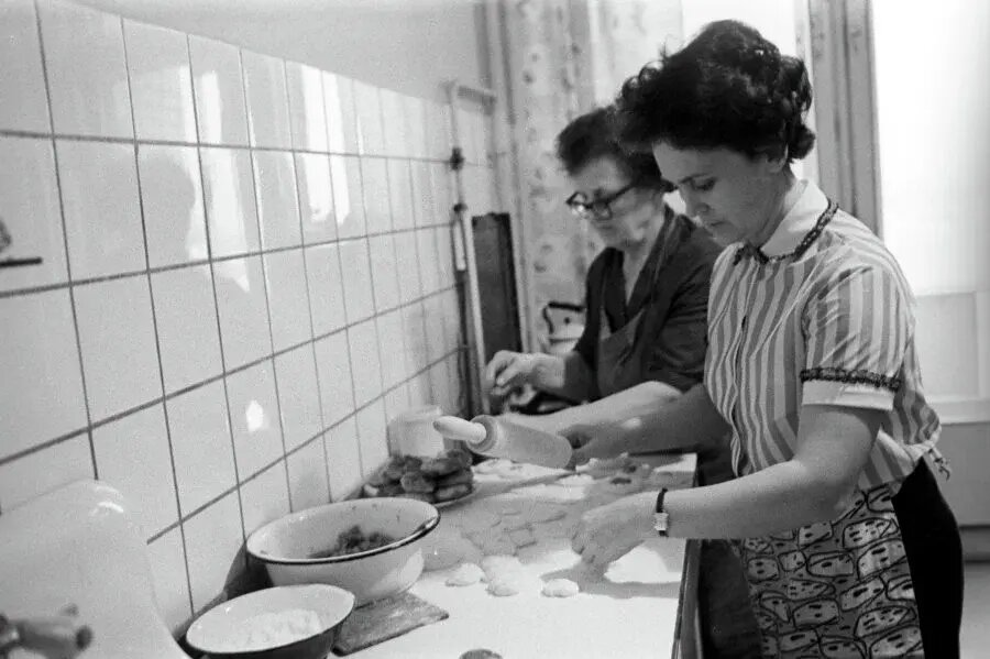 В Советском Союзе приготовление пельменей было не просто кулинарным процессом, это была настоящая семейная традиция. Домохозяйки гордились тем, что могли создать вкусное блюдо своими руками, и собирались вместе, чтобы лепить "пельмени". Этот процесс начинался с замешивания теста, обычно с использованием простых ингредиентов, а затем шло раскатывание и формирование маленьких овальных карманов для начинки.