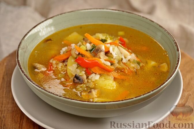 - Постный рассольник с грибами и рисом: Отличный вариант для тех, кто предпочитает легкие блюда. Этот рассольник с нежным вкусом соленых огурцов, дополненный рисом и грибами, понравится всем.