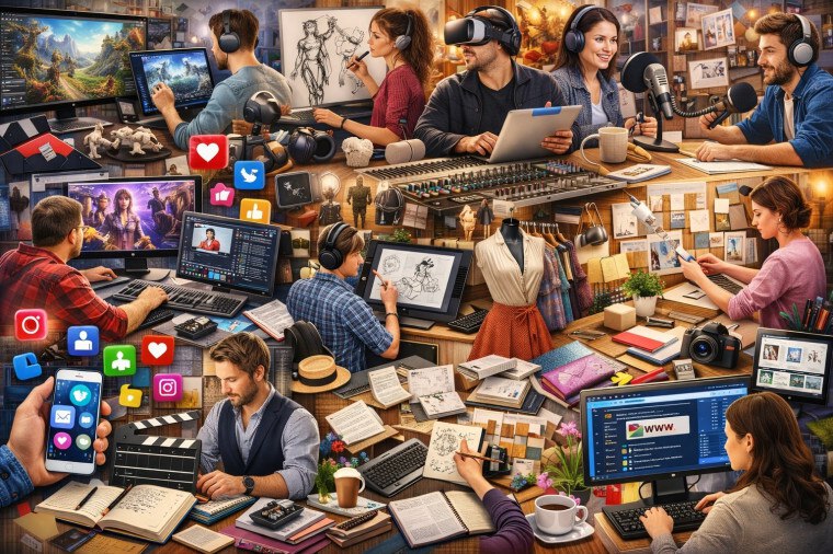 Разработчики игр, дизайнеры персонажей, создатели виртуальных миров, видеоблогеры, аниматоры, монтажёры, композиторы, звукорежиссёры, авторы подкастов, графические дизайнеры, модельеры, дизайнеры интерьеров, писатели, сценаристы,