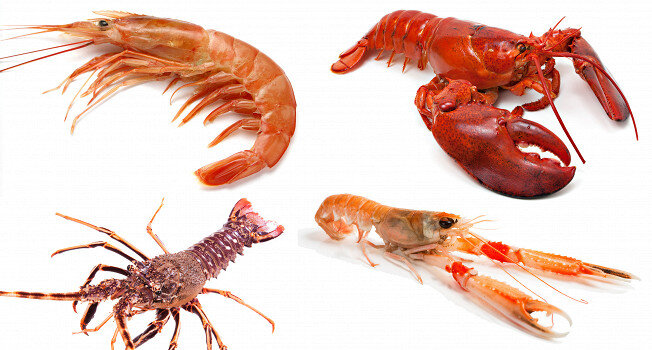 Лобстер отличается массивной формой, заметными клешнями и мясом, разделённым между хвостом, ногами и клешнями. Лангуст похож на крупного рака без клешней и с длинным хвостом, на котором сосредоточено основное мясо, а панцирь у него с шипами. Лангустины — это меньше лангустов, с клешнями и мясом в хвосте; иногда их подают целиком как деликатес, особенно сырые в тартах. Аргентинская креветка — это креветка, красная по цвету, без клешней и с изысканным вкусом, чаще используется целиком в блюдах.