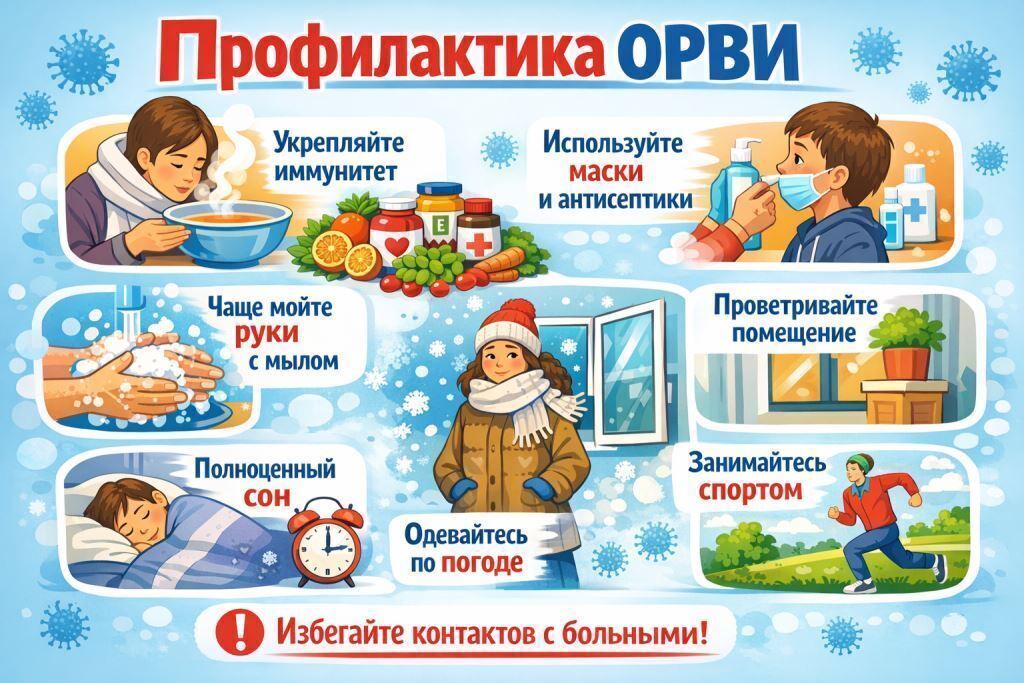 С наступлением холодов и увеличением влажности воздуха начинается сезон повышенной заболеваемости гриппом и острыми респираторными вирусными инфекциями (ОРВИ). В этот период особенно важно соблюдать меры профилактики, чтобы защитить себя и своих близких от инфекций.