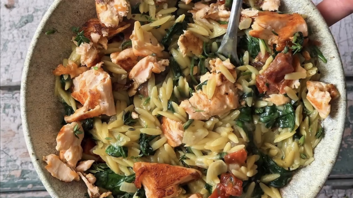 Само по себе орзо — это кулинарный уют, который согревает, как мягкий плед. Нежная паста, солоноватый пармезан, яркие вяленые томаты и сочный лосось создают идеальную гармонию. Простота в приготовлении и эффектная подача делают его отличным выбором для романтического ужина или трапезы наедине с собой.