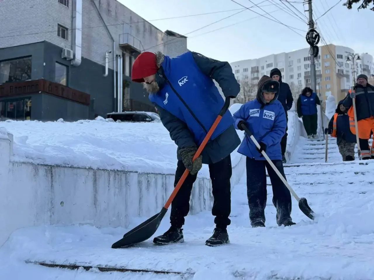 Партийцы и молодогвардейцы помогают городским службам убирать снег